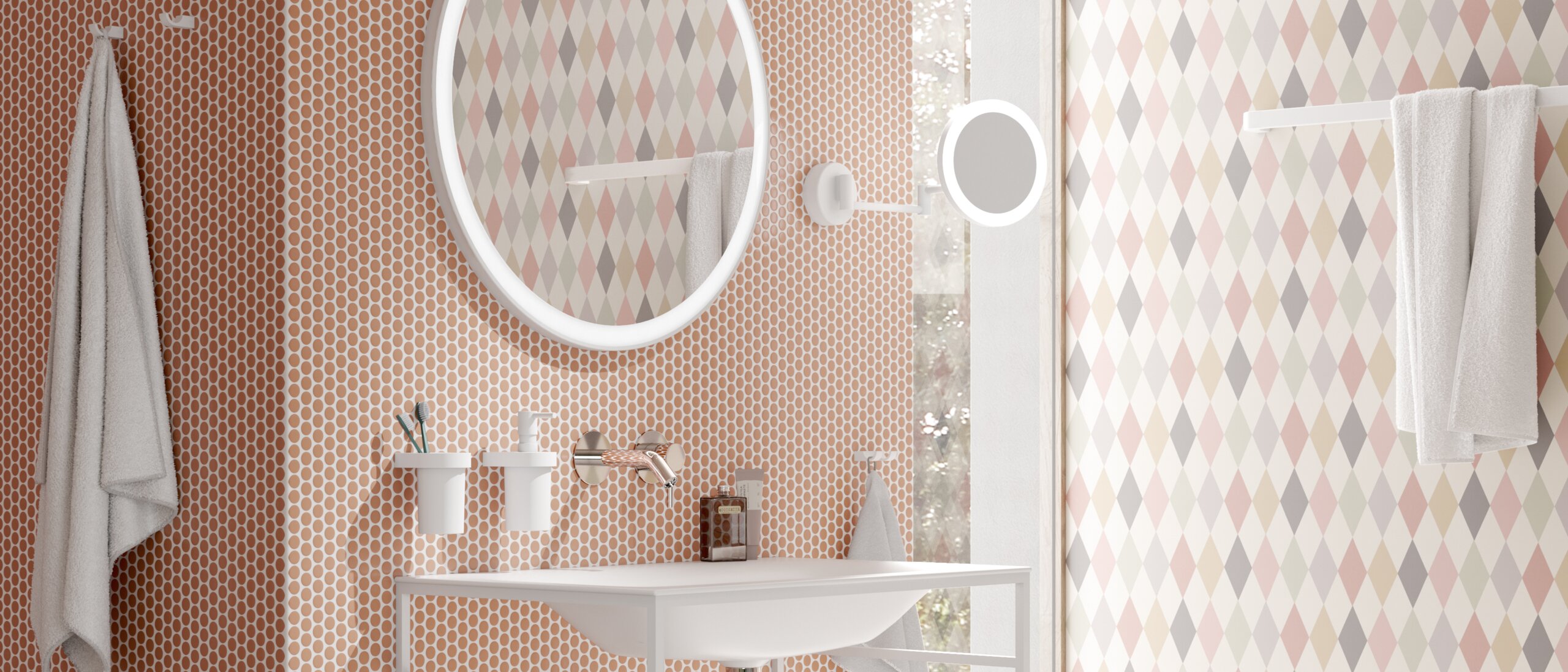 Auch die richtigen Accessoires lassen kleine Bäder optisch größer wirken. Die Produkte aus dem System 800 in der Ausführung Weiß matt sorgen für visuelle Leichtigkeit. Dank der hellen Farbgebung reflektieren sie das Licht optimal und erzeugen ein Gefühl von Weite und Offenheit, das auch in kleineren Räumen für eine freundliche und einladende Atmosphäre sorgt, ideal für temporäres Wohnen.