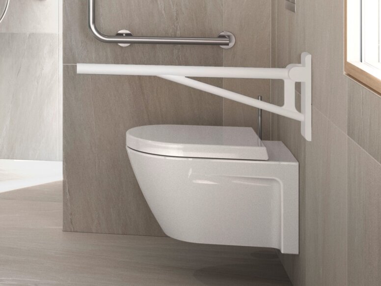 Folding support rails make it easier to stand up and sit down if strength and mobility are limited. Wheelchair users like to use a folding support handle to move from the wheelchair to the toilet and vice versa. A secure hold is essential in the bathroom. This applies not only to barrier-free bathrooms, but also to bathrooms for the elderly or care bathrooms.