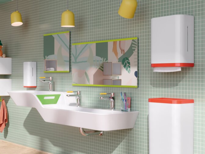 Whether barrier-free sanitary systems in kindergartens or durable door fittings in primary schools - HEWI products are as individual as the people who use them. They offer a high level of user comfort, maximum safety and are designed for intensive use in the education sector. The HEWI ranges and systems offer versatile solutions for building barrier-free sanitary facilities for schools and daycare centres that focus on safety, user-friendliness and durability.