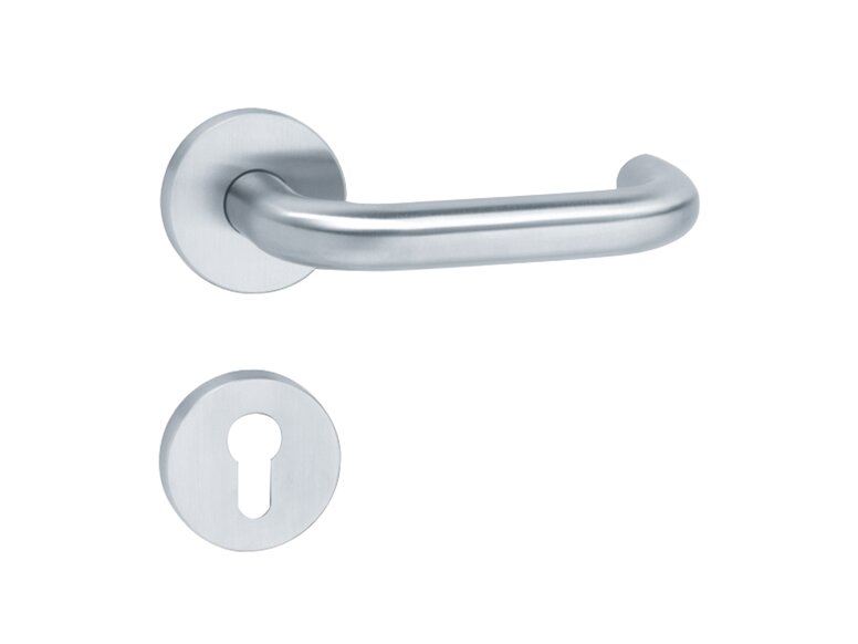 The System 111 fittings are available in both high-gloss polyamide and satin stainless steel and complement the sanitary systems perfectly. System 111 is a particularly resilient hardware solution, even on highly frequented classroom doors.