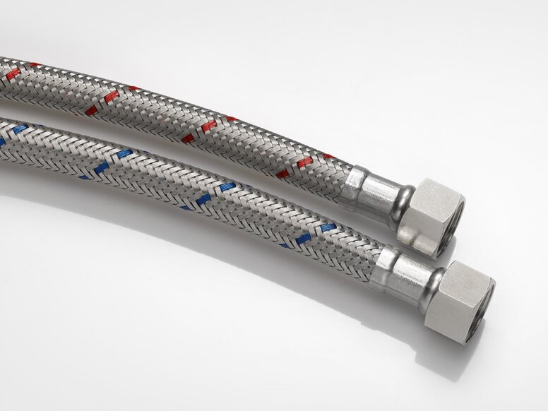 Pre-assembled components and clear markings on the connection hoses make installation a breeze. The 450 mm long connection hoses from Neoperls are made of stainless steel mesh and have coloured, interwoven threads for simple hot/cold identification.